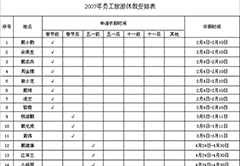 公司福利制度第十二条:在公司工作满两年以上的员工,每隔两年可向公司申请最多6个工作日的有薪旅游假期,并给予2000元的假期补贴。根据以上规定,需要申请2007年年休假的员工须填写《2007年员工休假申请表...