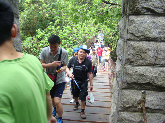 新闻中心 5月11日,公司举行了全体员工及部分家属集体攀登深圳梧桐山山顶比赛活动!活动得到了公司领导的大力支持及全体员工、部分家属的积极响应,更以饱满的热情投入到了本次登山活动中。早上8:00,大家准时齐聚集合地点,乘坐包车巴士,前往登山地点梧桐山山脚。车上,公司为员工发放了零食及矿泉水,充分体现了对员工的关怀。9点左右,巴士到达了梧桐山山脚下,在领队的带领下,集体合影留恋,准备登山。在宣读了爬山注意安全事项后,大家按领队的带领开始分线路陆续向顶峰奋勇进发。登山过程中,大家热情高涨,你追我赶,齐心一力,互帮互助,勇于攀登,充分发挥了团队的顽强拼搏和团队协作精神,经过约3个多小时的行程,体力充沛者陆续登上了深圳第一高峰(大梧桐山顶,海拔943.7米),体力较弱者陆续登上了“好汉坡”山顶。山顶上,大家谈笑风生,互相交流着登山的心得体会。公司领导为登上顶峰的员工合影登记、颁发奖品,并为大家鼓舞士气。5小时后,登上山峰的所有员工及其家属全部在“好汉坡”山顶合影留恋。之后,在领队的带领下,全部安全下山,聚餐。