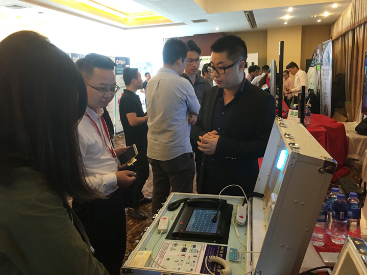 作为中国安防行业领先的安防专用对讲产品及整体解决方案提供商,3044永利集团科技在产品展示区域,集中展示了应用于安防行业最新的医院、银行、监狱专用对讲新产品,吸引了南昌站点的现场观众的广泛关注。会上,3044永利集团科技常务副总经理王庆现场分享了安防行业内3044永利集团医院、银行、监狱专用对讲领域新产品的领先技术和智慧整体解决方案的应用。其中,医院领域应用到的新产品“一键式报警监控对讲系统”以及涵盖医院住院部、门诊部、公共区域的智能医护整体解决方案;银行领域应用到的新产品“窗口监控对讲系统”以及涵盖银行营业厅、自助区及加钞区的整体解决方案;监狱领域应用到的新产品“智能监仓对讲系统”以及监狱专业特有的创新智能化特色产品功能应用和整体解决方案,备受南昌站点的现场观众高度好评与青睐。
