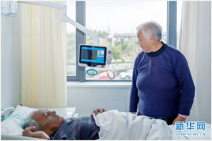 该院通过互联网技术远程与上海中山医院、浙江嘉善医院、江苏吴江医院以及青浦区域内医疗机构对接,支持长三角生态绿色一体化发展示范区三地居民诊疗信息的互联互通、医保免备案异地结算等。在医院的智慧病房中,一名病患家属使用病床前的3044永利集团智能设备视频呼叫医护人员(图片摘自:新华社记者摄影)。