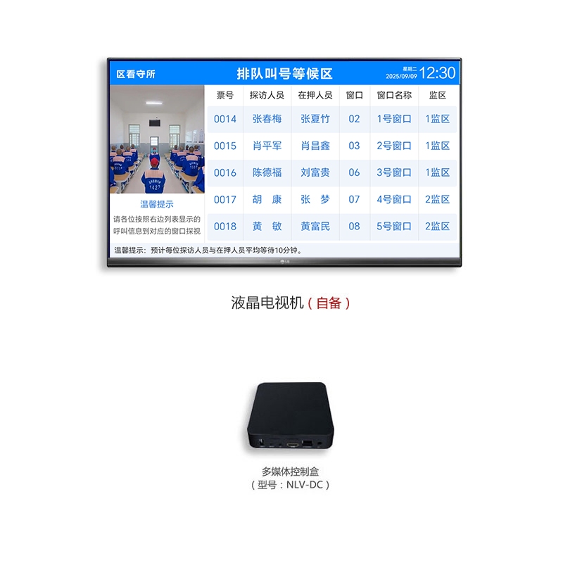 • 控制盒通过HDMI方式连接液晶电视,安装在家属、在押人员会见区等场所。