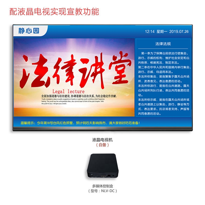 • 具有电视播放、视频点播、法制教育、视频直播、信息发布、滚动字幕等功能。