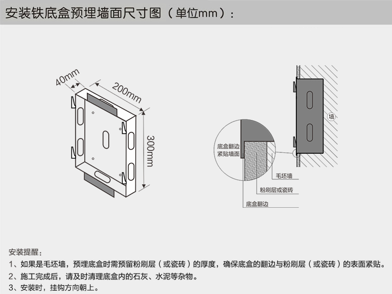 安装铁底盒预装墙面尺寸图