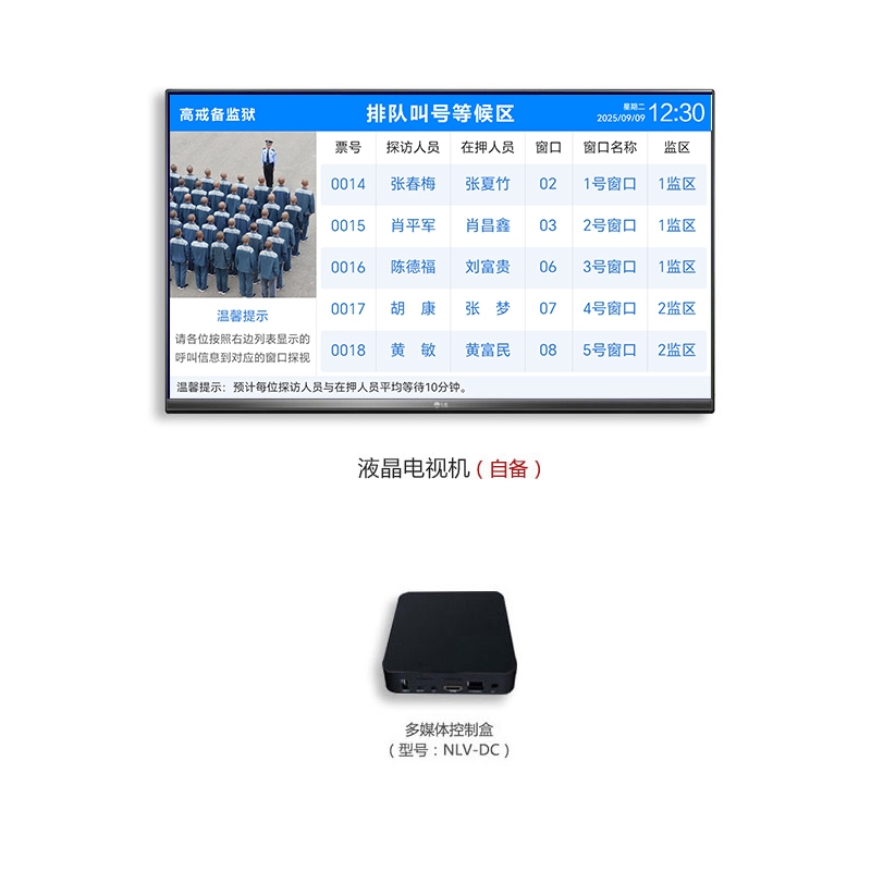 • 控制盒通过HDMI方式连接液晶电视,安装在家属、在押人员会见区等场所。
