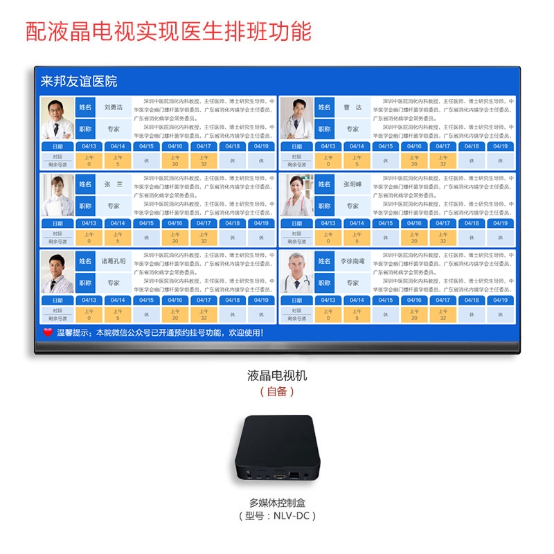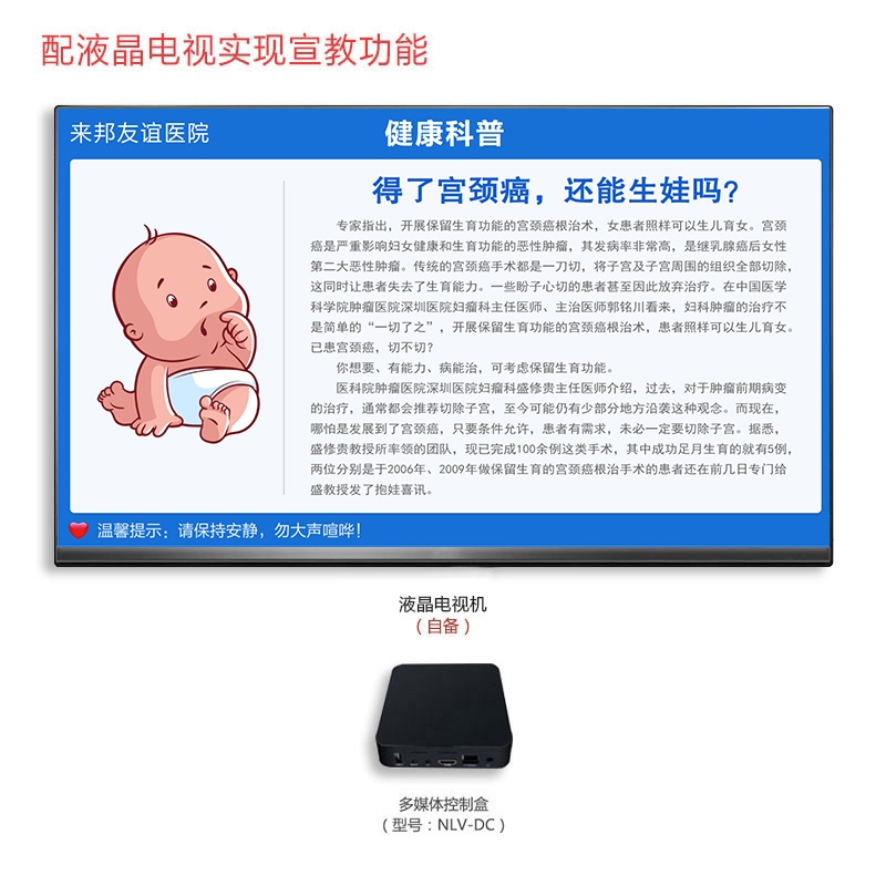 • 具有接收展示健康宣教、科室宣传、出诊信息、药品价格等信息的功能。