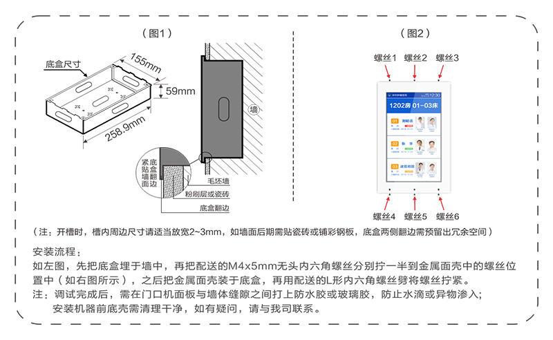 • 采用10.2英寸高清液晶显示屏,嵌入式安装在病房门口。